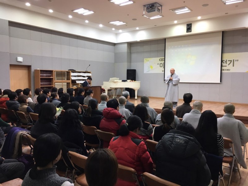 무산복지재단에서는 한해를 마무리하는 송년법회를 2016년 12월 15일 오후 6시 30분에 낙산유치원 강당에서 실시하였습니다.
