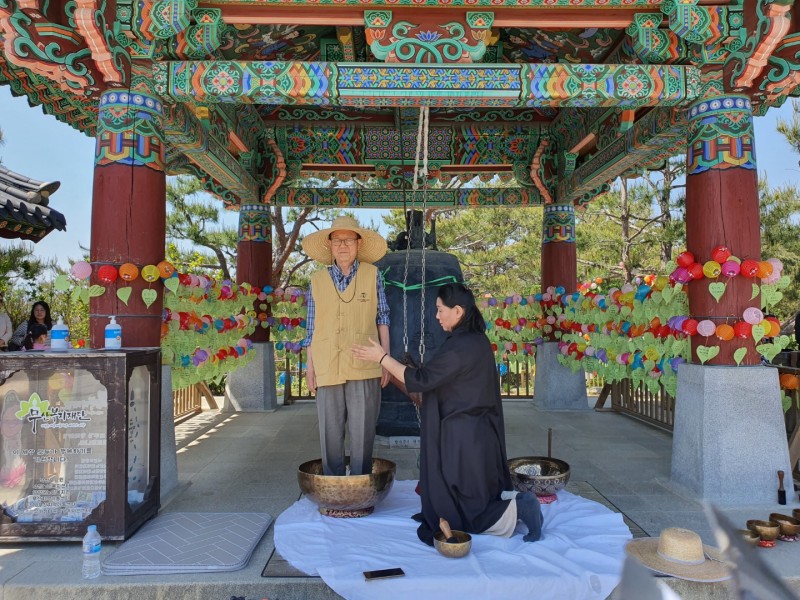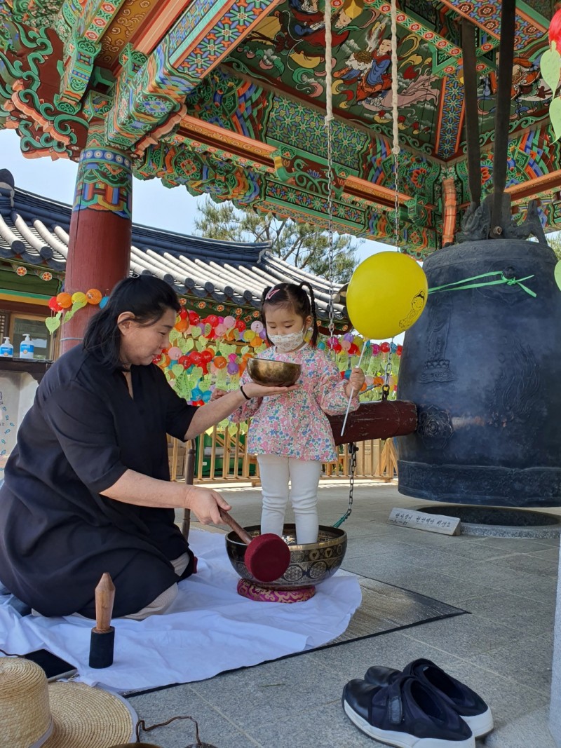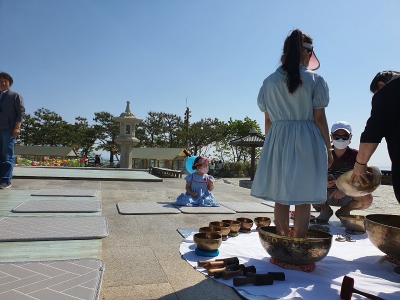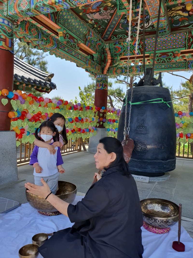 낙산사 해수관음전에서 5월 5일 어린이 날 행사로 싱잉볼 명상 체험을 진행하였으며